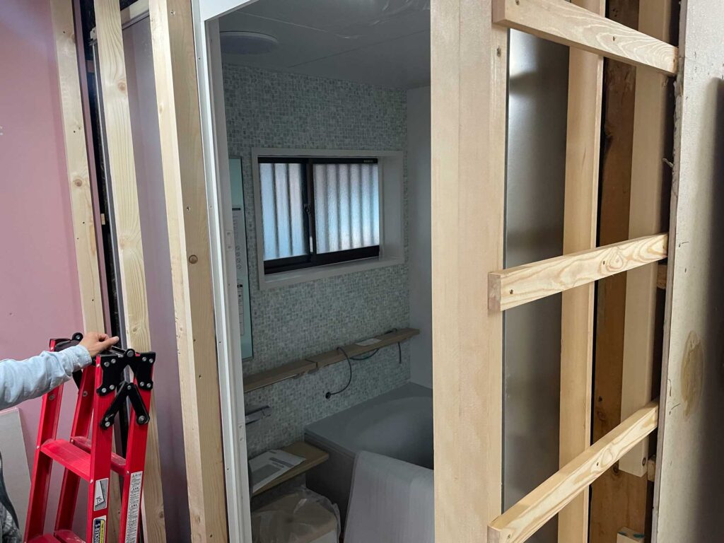 ユニットバスの組み立て中