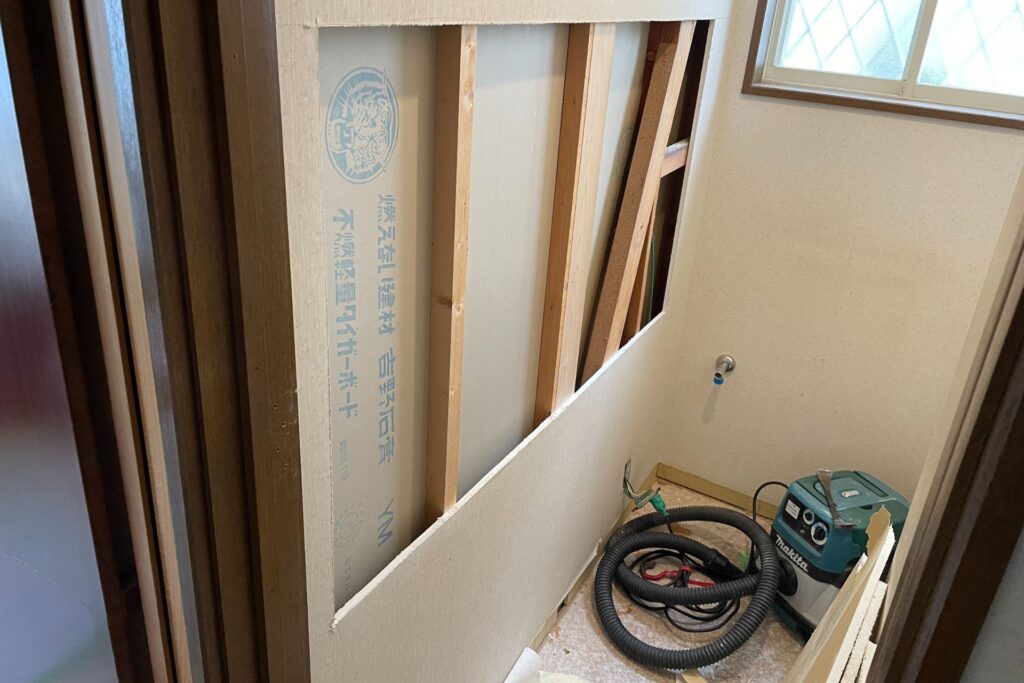 手すりを取り付けるための下地を施します.